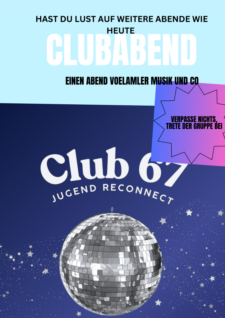 Dann lädt unser Jugendteam ein zum Clubabend.